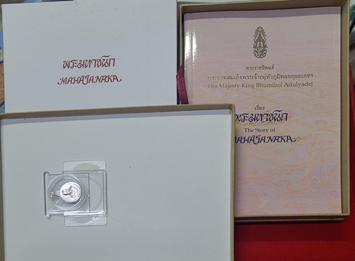 เหรียญพระมหาชนก เนื้อเงิน พิมพ์เล็ก ปี 2542 พร้อมหนังสือกล่องนอก,ในครบ สภาพสวยใหม่ #5