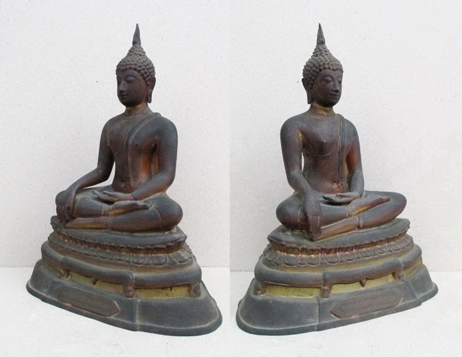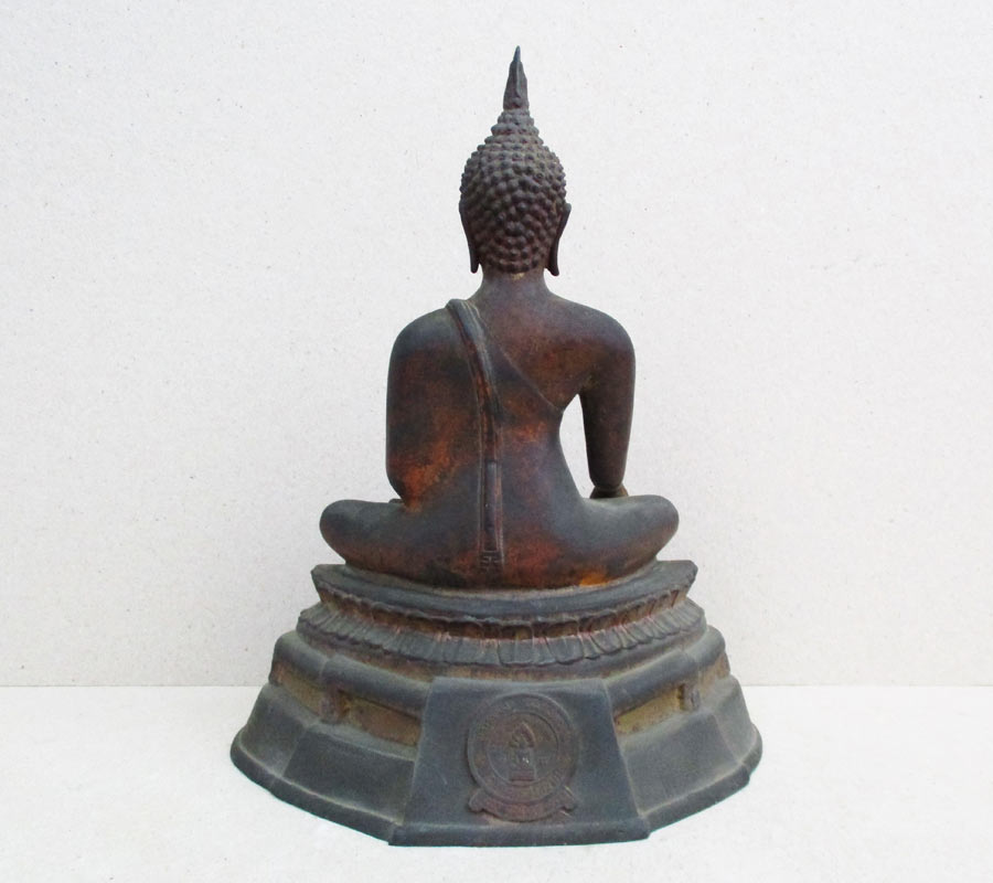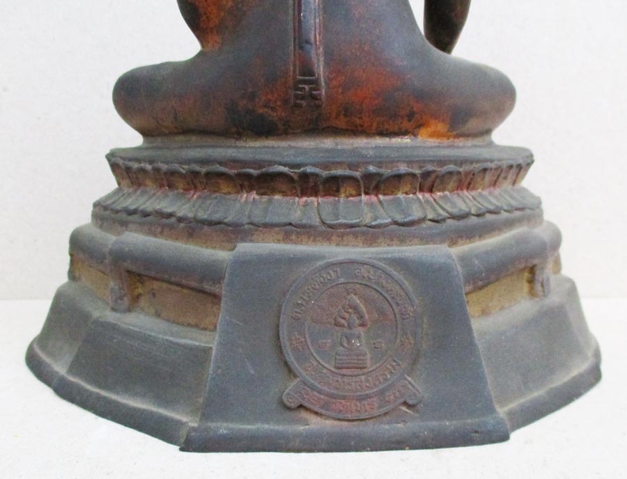 ฐานกว้าง 7.5 นิ้ว องค์พระกับฐานบัดกรีเชื่อมติดกัน หล่อดินไทยดำ !!