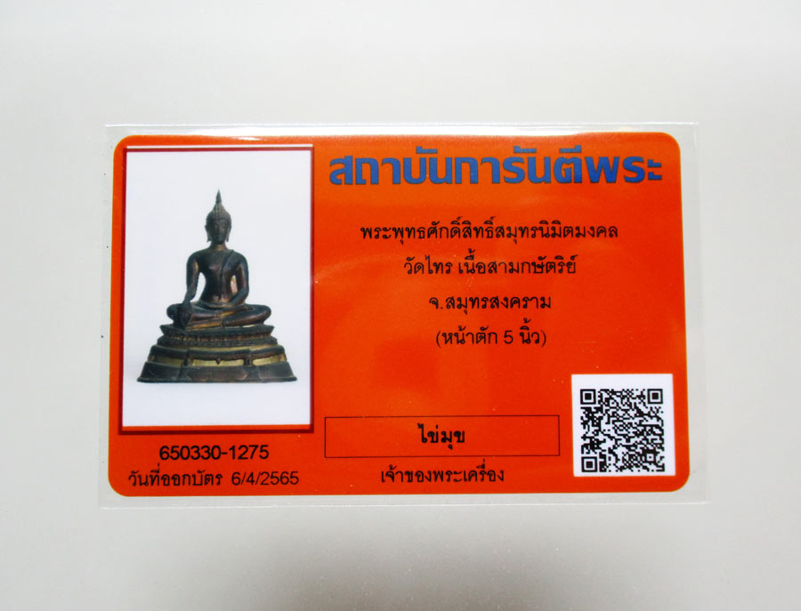 พระพุทธศักดิ์สิทธิ์สมุทรนิมิตมงคล วัดไทร จ.สมุทรสงคราม หน้าตัก 5 นิ้ว เนื้อโลหะสามกษัตริย์ผิวหิ้ง หล่อดินไทย พร้อมบัตรพระแท้การันตีพระ !!