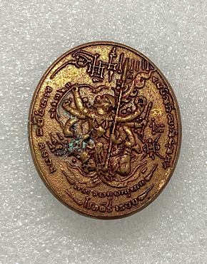 เหรียญหล่อพญาราหู หลังหนุมาน หลวงปู่ดวงเศรษฐี วักหนองไผ่ จ.อุทัยธานี เนื้อทองแดงขัดยาแดงโบราณ กล่องเดิม