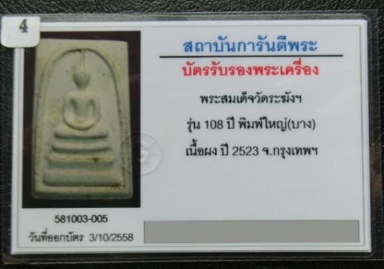 สมเด็จ 108 ปี พิมพ์ใหญ่บาง วัดระฆังฯ พ.ศ.2523 พร้อมบัตรรับประกัน G-Pra