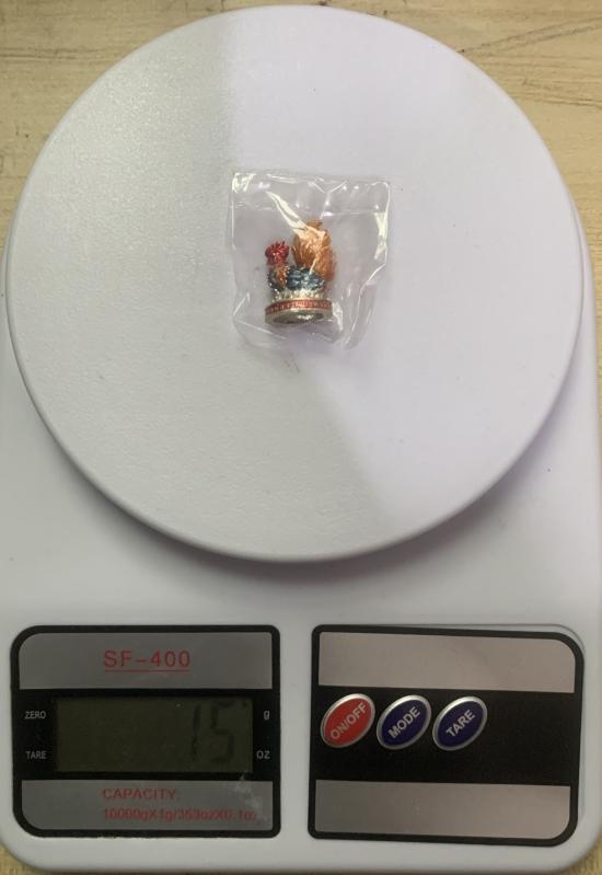 ไก่เนื้อเงิน ลงยาราชาวดี หลวงพ่อรวย ปาสาทิโก รุ่นบูชาครู ออกวัดพระธาตุเชิงเขา ปี 2564 น้ำหนัก 15 กรัม