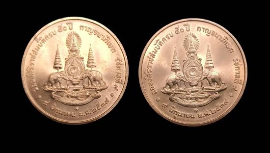 เหรียญรชกาลที่9 ฉลองสิริราชสมบัติครล 50 ปี กาญจนาภิเษก ปี2539 เนื้อทองแดง 2 เหรียญคู่