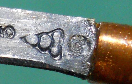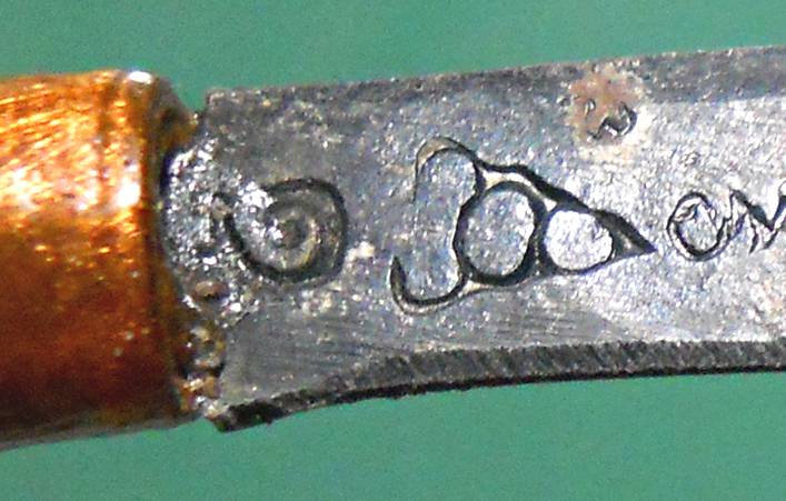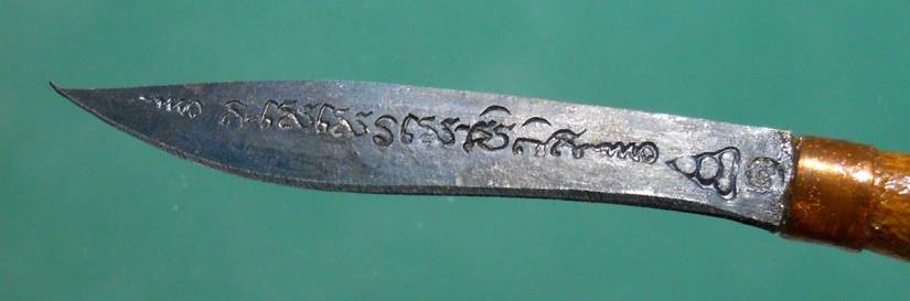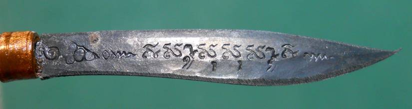 ใบมีดด้านหนึ่ง ตอกอักขระหัวใจพระรัตนตรัย "อิ สะ วา สุ สุ สะ วา อิ"