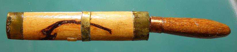 ในด้ามมีดบรรจุเกศาหลวงพ่อชื้น ผงวิเศษ และผงดินพระรัตนจักรรุ่นแรกปี 2500 ไว้ด้วย