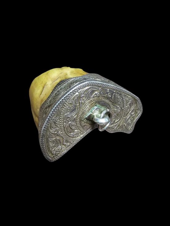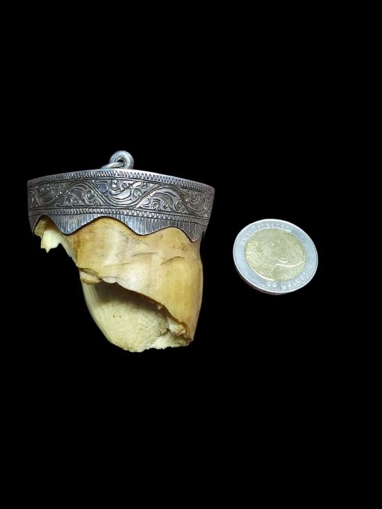 รายละเอียด งากระเด็นเเท้ๆขนาดใหญ่พอสมควรเลี่ยมเงินเก่า
