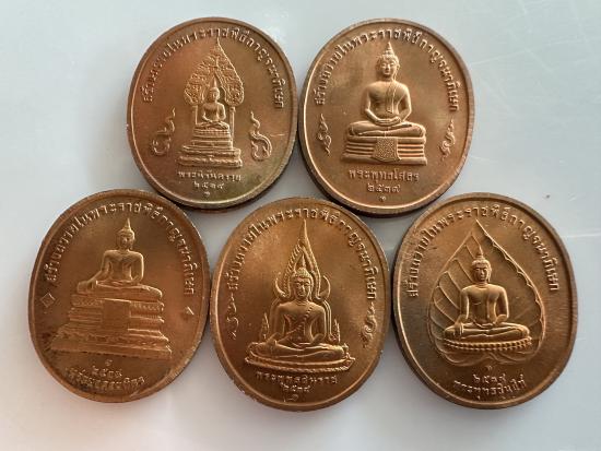 #เคาะเดียว# เหรียญพระพุทธปัญจภาคี หลังในหลวงรัชกาลที่ 9 แบบพิมพ์ใหญ่ ครบชุด 5 เหรียญ เนื้อทองแดง ปี 2539 พร้อมกล่องครบถ้วน |