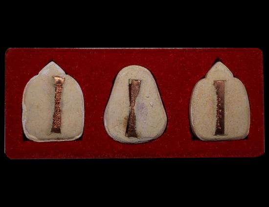 พระปิดตาชุดพระพุทธมงคลชัยมหาลาภ เนื้อผงฝังตระกรุดมหาจักรพรรดิ ปี พ.ศ.2542 จ.พิษณุโลก พระครูเทพย์สร้าง หลวงปู่หมุน ฐิตสีโล พระอาจารย์ตั้ว วัดซับลำไย ปลุกเสก พร้อมกล่องเดิม แดงเคาะแรก |