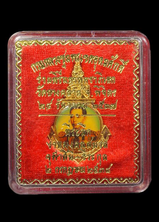 เข็มกลัด "นะ ฤาชา" กรมหลวงชุมพร ฯ (พระครูไพโรจน์วุฒิธรรม (อภิโชโต) วัดตรีทศเทพ จัดสร้าง) ร่วมพิธีพุทธาภิเษก วัดบางคลาน จ.พิจิตร ปี 2527 กล่องเดิมๆ |