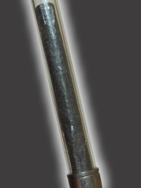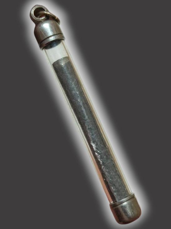 A6808.เครื่องราง ตะกรุด เนื้อตะกั่วเก่า เลี่ยมพร้อมใช้ ไม่ทราบที่ ความยาวรวมเลี่ยม 2.5 นิ้ว เคาะเดียวเเดง