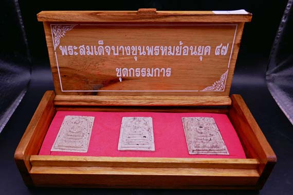 ชุดกรรมการ 3 องค์ สมเด็จบางขุนพรหม ผสมผงเก่า ปี47 3 พิมพ์ พร้อมกล่องไม้.