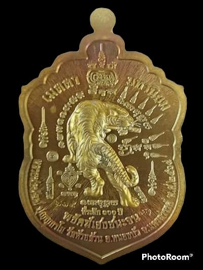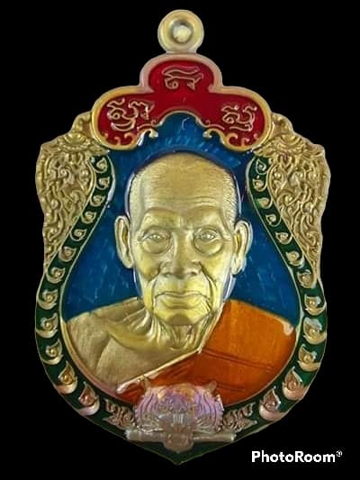 เนื้อ..ลงยาน้ำเงิน ขอบเขียว ซุ้มแดง ลงยาจีวร พยัคฆ์มหาเฮงชนะจน(เสื0.4)หลวงพ่อพัฒน์ วัดห้วยด้วน