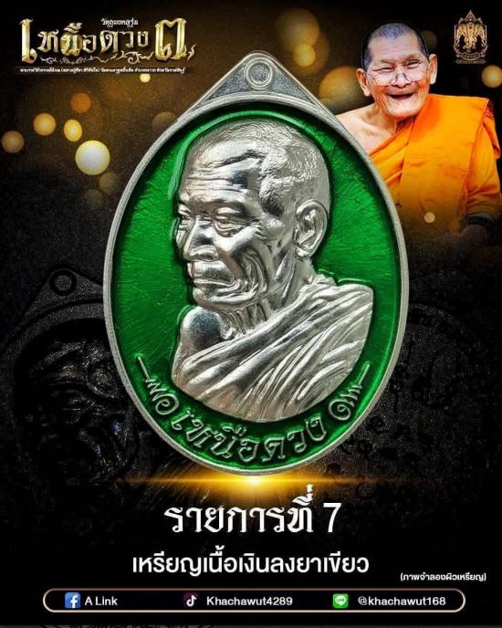 เหรียญเหนือดวง3 หลวงปู่มหาศิลา วัดพระธาตุหมื่นหิน เนื้อเงินลงยาสีเขียว ไม่แกะซีลลุ้นเลขสวย ปี2569