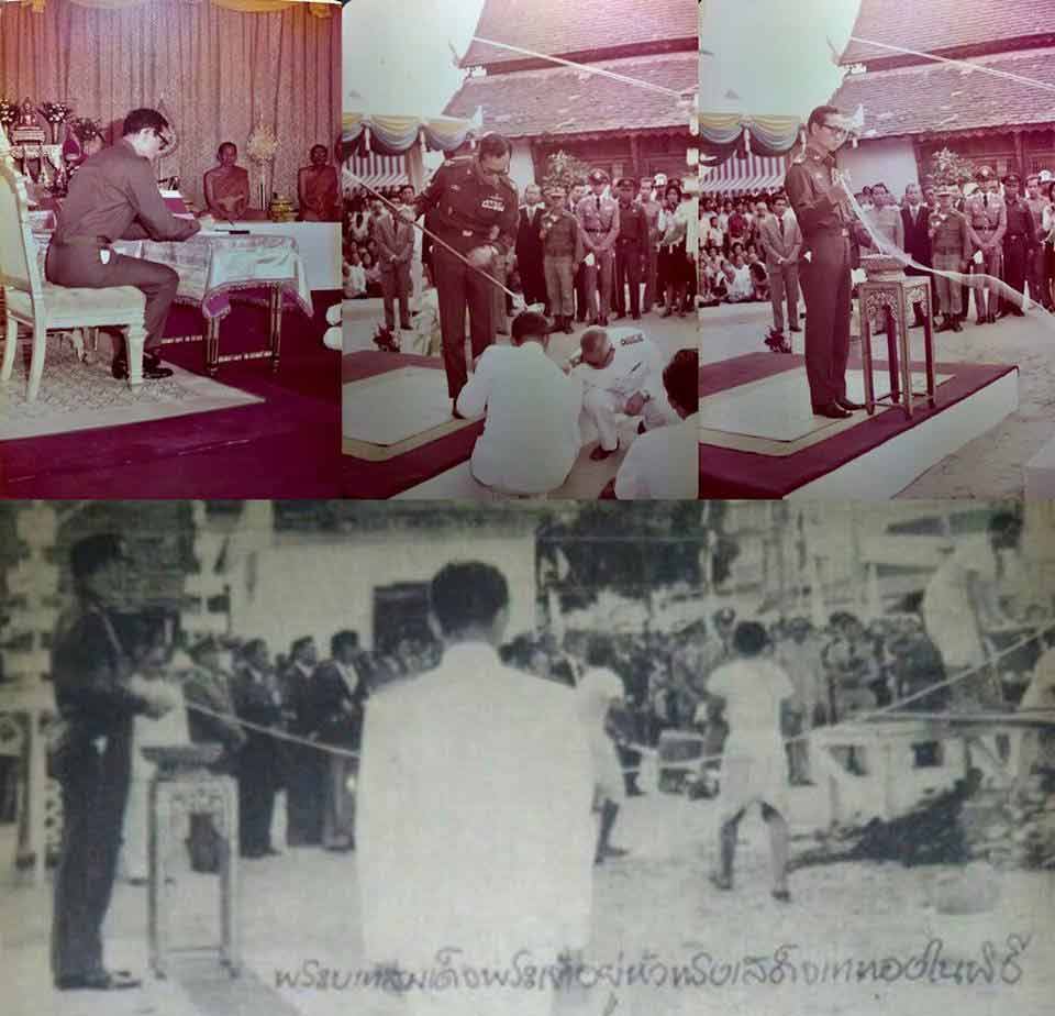 ราวต้นปี พ.ศ.๒๕๑๙ ในหลวงรัชกาลที่ ๙ เสด็จพระราชดำเนินทรงประกอบพิธีเททอง ในหลวงทรงจุดเทียนชัยพุทธาภิเษก ทรงพระสุหร่าย ทรงเจิม