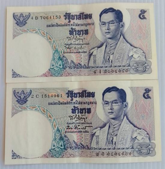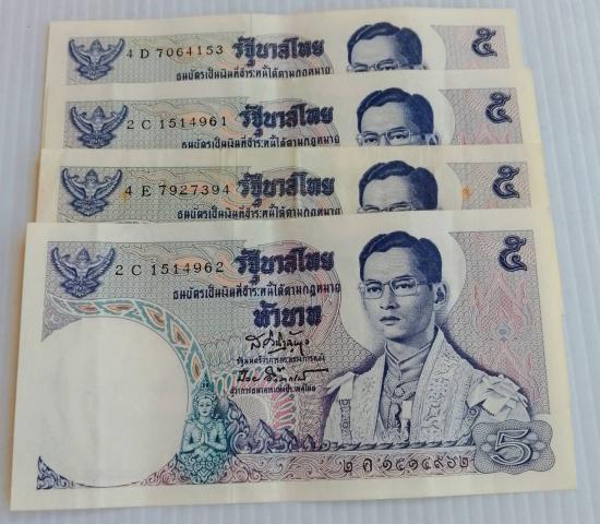 ธนบัตรเก่า ( ร.9) 5 บาท จำนวน 4 ใบ