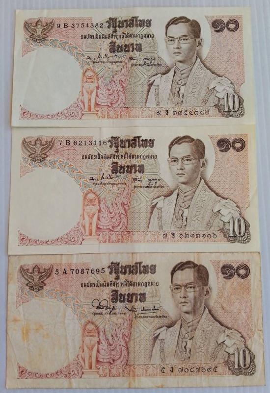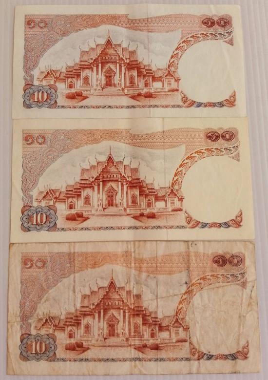 ธนบัตร แบงค์10 บาทรัชกาลที่9 โทมัสแบบ11 ด้านหลังรูปวัดเบญจมบพิตร จำนวน 5 ใบ