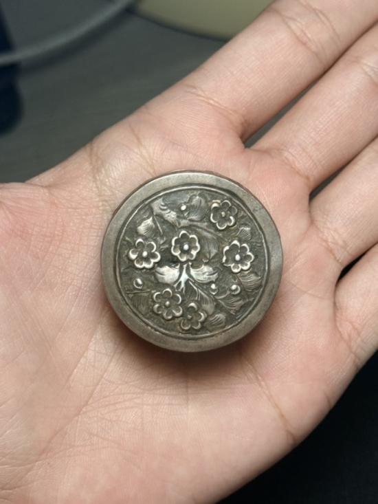 ตลับสีผึ้ง เนื้อเงินเก่า ตอก ภาษาจีน หนัก 17 กรัมกว่าๆๆๆ เงินเปอเซ็นต่ำหน่อย งานจีนเก่า |
