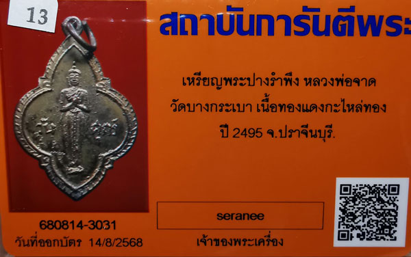 (วันศุกร์)เหรียญพระปางรำพึง หลวงพ่อจาด วัดบางกระเบา เนื้อทองแดงกะไหล่ทอง ห่วงเดิม ปี2495 จ.ปราจีนบุรี + บัตรG-pra สภาพเดิมค่ะ |