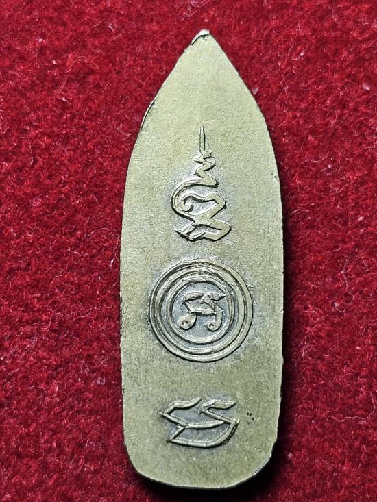 เหรียญใบหอกเล็ก หลวงพ่อโตอุ้มบาตร หลังยันต์ วัดอินทรวิหาร บางขุนพรหม กรุงเทพฯ เนื้ออัลปาก้า ปี 2500 |