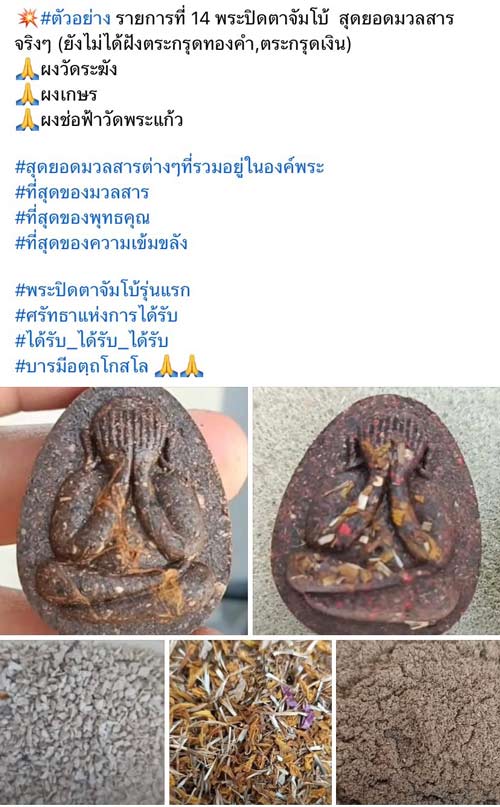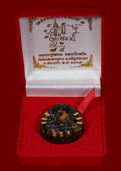 พระปิดตาจัมโบ้1 รุ่นแรก หลวงปู่สอน วัดโคกสะพานขาว อ.อรัญประเทศ จ.สระแก้ว เทพเจ้าแห่งการได้รับ เนื้อว่านผสมยาคลุกแผ่นทองเก่า ฝังตะกรุดทองคำแท้ๆ 9 ดอก(ท็อปสุด)องค์นี้พิเศษเกศาหลวงปู่เยอะมาก จำนวนสร้างน้อยเพียง 29 องค์เท่านั้น