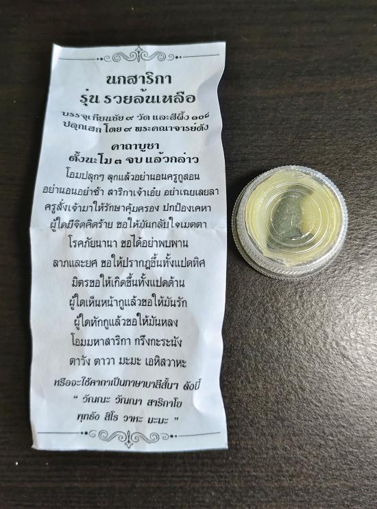นกสาริการวยล้นเหลือ บรรจุเทียนชัย 9 วัด และสีผึ้ง 108 ปลุกเสกโดย 9 พระคณาจารย์ดัง