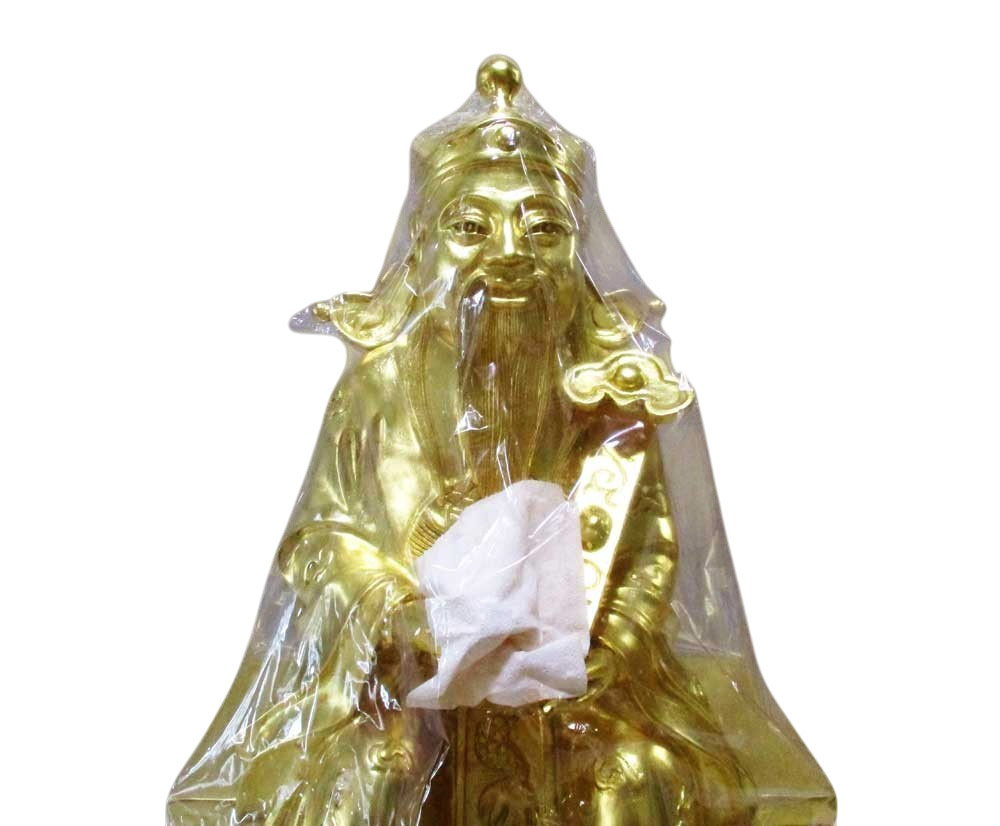 เทพเจ้าแห่งโชคลาภ ไช้ซิงเอี้ย วัดพระพุทธบาทราชวรมหาวิหาร จ.ส ระบุรี พ.ศ.2547 เนื้อโลหะผสมปิดทองคำเปลว ขนาดฐานกว้าง 16 นิ้ ว สูงรวมฐาน 25 นิ้ว