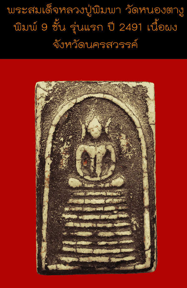 สมเด็จพิมพ์เก้าชั้น หลวงปู่พิมพา วัดหนองตางู ปี2491 (สร้างที่วัดระฆัง ใช้มวลสารสมเด็จโต) หายาก