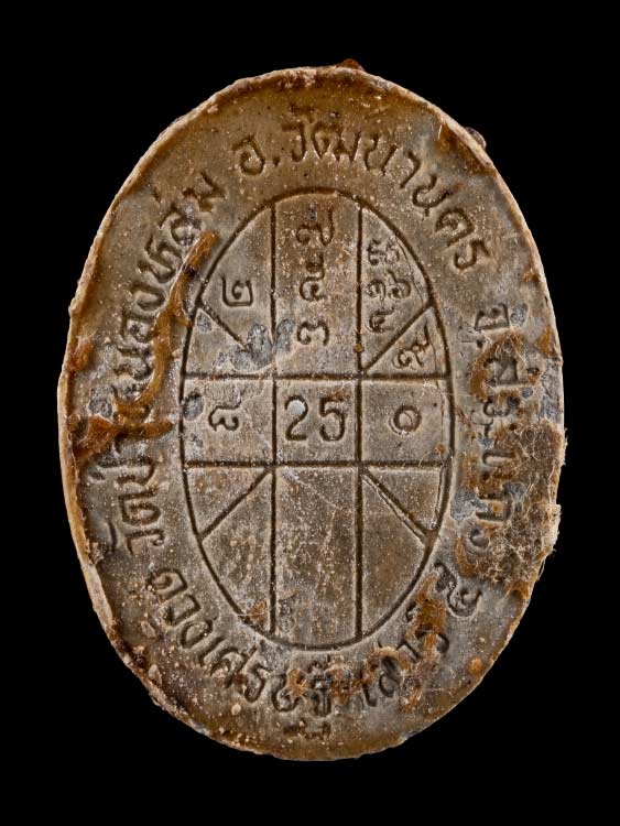 พระผงยันต์ดวงเศรษฐี หลวงปู่หมุน ฐิตสีโล วัดบ้านจาน ผสมเกศา ชานหมาก ปี ๒๕๔๓ พระผงดวงเศรษฐี หลวงปู่หมุน ..... พระผงรูปเหมือนวาจาสิทธิ์ของหลวงปู่หมุน ที่ได้กล่าวไว้ก่อนละสังขาร ซึ่งลูกศิษย์และชาวบ้านต่างจดจำได้ติดหู คือของๆฉันสร้างเองกับมือ ใครมีไว้บูชาจะ หมุนโชคลาภร่ำรวยตลอดเวลา ทำมาค้าขึ้น ไม่มีวันจน ประกอบสัมมาอาชีพใดก็รุ่งเรือง เจริญลาภยศสรรเสริญ จะมีชื่อเสียงหอมขจรขจาย ขอให้เป็นคนดี คิดดี ทำดี ละเว้นชั่ว คุณพระจะรักษา เทวดาจะคุ้มครอง แม้นว่าฉันจะตายไป ของๆ ฉันจะขลังกว่านี้ อีกหลายร้อยเท่า น้ำลาย ไอปาก ลมปราณที่ประจุลงไปด้วยพลังจิตอันเข้มขลังของฉัน ย่อมเป็น หนึ่งบ่เป็นสอง ครบเครื่องเป็นองค์พระที่ดีทั้งนอก ดีทั้งใน ฝากไว้ในแผ่นดิน ให้เลื่องชื่อลือนาม ลือเรื่องถึงเมืองแมน วิธีบูชาวัตถุมงคลและหลวงปู่หมุน ให้ระลึกถึงพระรัตนตรัยและหลวงปู่หมุน ฐิตสีโล 1.) ตั้ง นะโมฯ (๓จบ) 2.) หลวงปู่หมุน ฐิตสีโล นามะเต ประสิทธิเม มะอะอุ อุอะมะ (๓จบ) แล้วบอกกล่าวหลวงปู่หมุนในเรื่องที่ต้องการให้ท่านสงเคราะห์ ภาวนาบอกท่านบ่อยๆ สำเร็จมาแล้วมากมาย เมื่อสมปรารถนาแล้วก็ถวายสังฆทานถวายอุทิศให้ท่าน หลวงปู่หมุน พระเถระ๕แผ่นดิน ประวัติปฎิปทา ท่านไม่ธรรมดา ลูกศิษย์ผู้มีจิตศรัทธา มั่นใจได้ว่าพระเครื่องวัตถุมงคลของท่าน ไม่เป็นรองสำนักใด ปลุกเสก 1 ไตรมาส และเข้าพิธีอีก 5 วาระ พุทธาภิเษก ๕ วาระ (ครั้งที่๓ หลวงปู่สรวง เทวดาเล่นดิน นักบุญแห่งบ้านละลม อ.ขุขันธ์ ศรีสระเกษ มาตั้งกสิณไฟ ปลุกเศกเป็นปฐมฤกษ์) ครั้งที่ 1 ทำพิธีเททองหล่อพระรูปเหมือน 9 นิ้ว 5 นิ้ว 3 นิ้วรูปหล่อพิมพ์เบ้าทุบ ครอบน้ำพระพทุธมนต์ รูปหล่อครึ่งซีกที่ติดข้างขันน้ำมนต์พระปิดตายันต์ยุ่ง หลวงปู่หมุนอธิษฐานจิตเดี่ยวและเป็นประธานเททองที่วัดป่าหนองหล่ม สระแก้ว เมื่อวันที่ 27 กุมภาพันธ์ 2543 ครั้งที่ 2 ทำพิธีพุทธาภิเษกที่อุโบสถ วัดสุทัศน์ฯ 16 มีนาคม 2543 โดยมีหลวงปู่ลมัยวัดโพธิ์เย็น เพชรบูรณ์ (อายุ 101 ปี),หลวงพ่อเพี้ยน วัดเกริ่นกฐิน ลพบุรี,หลวงปู่หลุย วัดราชโยธา ,หลวงปู่ผล วัดโนนทอง ลพบุรี , หลวงพ่อจันทร์ วัดนางหนูหลวงพ่อสินธิ์ชัย วัดโพธิ์เย็น เพชรบูรณ์,หลวงพ่อถนอม คณะ 2วัดสุทัศน์ฯ ครั้งที่3 เสาร์ 5 วัดป่าหนองหล่ม วันที่ 8 เมษายน 2543 หลวงปู่หมุนเป็นประธานพิธีร่วมกับหลวงปู่ถอง อายุ 102 ปี วัดสระมณฑล อยุธยา, หลวงปู่ลมัยวัดโพธิ์เย็น เพชรบูรณ์ (อายุ 101 ปี) หลวงพ่ออิน วัดบ้านด่าน ศิษย์เอกหลวงพ่อเอียและหลวงปู่สรวง นักบุญแห่งบ้านสายลม บุรีรัมย์ มาอธิษฐานจิตตั้งกสิณไฟปลุกเสกในเวลาตี 3 กว่าด้วย 