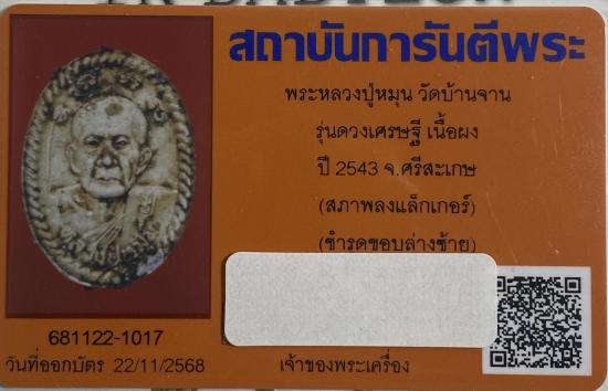 นิยมสุดโซนผงน้ำมัน พระผงดวงเศรษฐี หลวงปู่หมุน ปี2543 สวยเดิม + บัตรรับรอง G-Pra ครับ