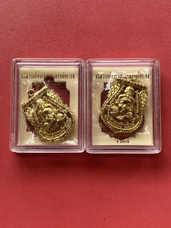เคาะเดียวแดง หลวงปู่ทวด อาจารย์ทอง รุ่นแซยิด93 พิมพ์ใหญ่ 2องค์ เนื้ออัลปาก้าผิวเปียกทอง |