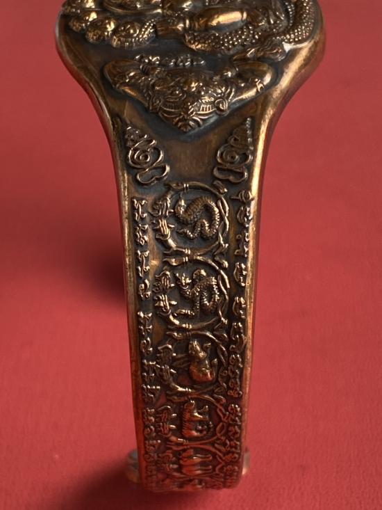 เคาะเดียวแดง กำไล องค์พ่อจตุคาม-รามเทพ รุ่นมงคลจักรวาล เนื้อสำริด เลข 463 |