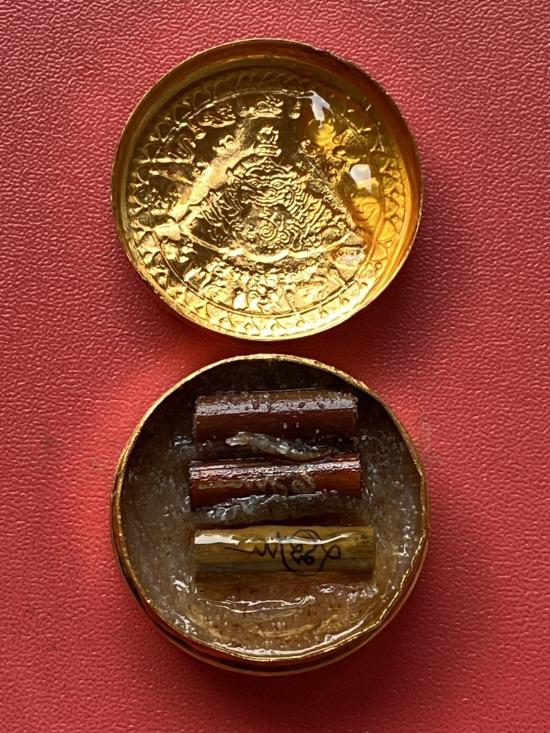 เคาะเดียวแดง สีผึ้งพระราหู รุ่น มงคลจักรวาล เนื้อ โลหะชุบทองลงยาสีดำขอบสีแดง ขนาด 3.2ซม |