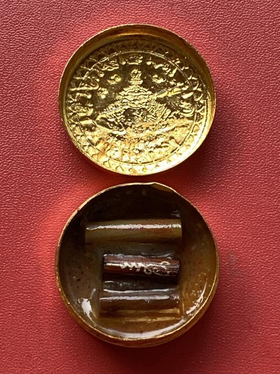 เนื้อ โลหะชุบทองลงยาสีดำขอบสีแดง ขนาด 3.2ซม |
