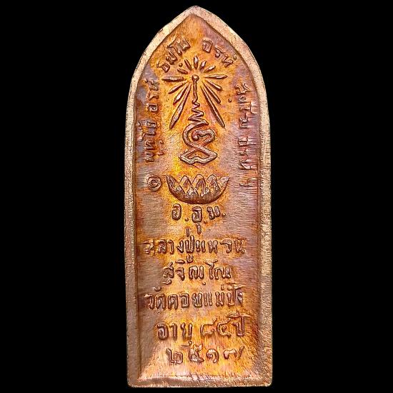 รายละเอียด วัดสัมพันธวงศ์ กรุงเทพมหานคร จัดสร้าง คราวทำบุญอายุหลวงปู่ ๘๔ ปี เข้าพิธีในวันงานฉลองอายุเมื่อ ๑๑ มี.ค.๒๕๑๗ เป็นรูปใบข้าว หลวงปู่ห่มคลุมหน้าตรงยืนเต็มองค์ มีลายเม็ดไข่ปลาเป็นซุ้ม ไม่มีห่วง ด้านหลังรูปเฆาะขัดสมาธิ มีรัศมี บัวรองรับ พระคาถา พุทโธ อรหํ ธมฺโม อรหํ สงฺโฆ อรหํฯ อ.อุ.ม. ข้อความ "หลวงปู่แหวน สุจิณฺโน วัดดอยแม่ปั๋ง อายุ ๘๔ ปี ๒๕๑๗" มีโค้ดตอก เหรียญทองแดงรมดำและไม่ได้รม 50,000 เหรียญ, นวโลหะ 108 เหรียญ, เงิน 85 เหรียญ, ทองคำ 17 เหรียญ และที่สำคัญความน่าสนใจของเหรียญนี้มีดังนี้ครับ