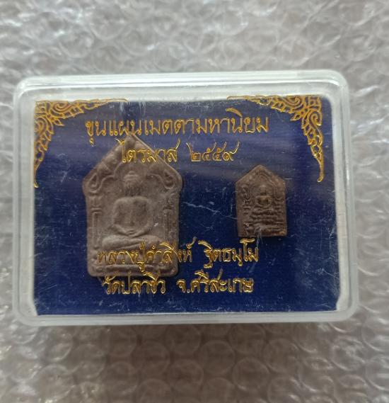 ขุนแผนพิมพ์ใหญ่หลังติดแผ่นปั๊มรูปเหมือนเนื้อเงิน +พิมพ์เล็ก หลวงปู่คำสิงห์ วัดปลาซิว ศรีสะเกษ |