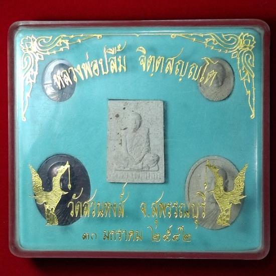 พระชุดกรรมการ หลวงพ่อปลื้ม วัดสวนหงส์ จ.สุพรรณบุรี ปี2542 (ประกอบด้วย เหรียญรูปเหมือน พระผงรูปเหมือน สภาพสวย นิยม หายาก กล่องเดิม) |