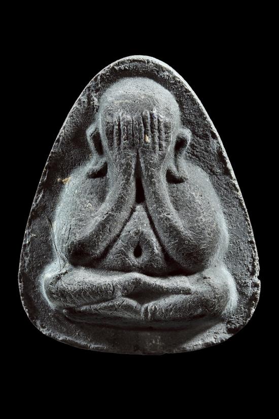 พระปิดตาหลวงปู่โต๊ะ วัดประดู่ฉิมพลี รุ่นปลดหนี้ พิมพ์หลังยันต์ตรี เนื้อผงใบลาน พ.ศ 25211-2523