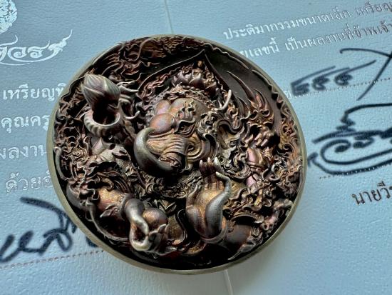 ประติมากรรม เหรียญพิฆเนศวร ผลงาน อ.วีรยุทธ ศรีเกษร หมายเลข 444/699 เนื้อทองเหลือง ด้านหลังมีลายเซ็นต์ศิลปินครับ