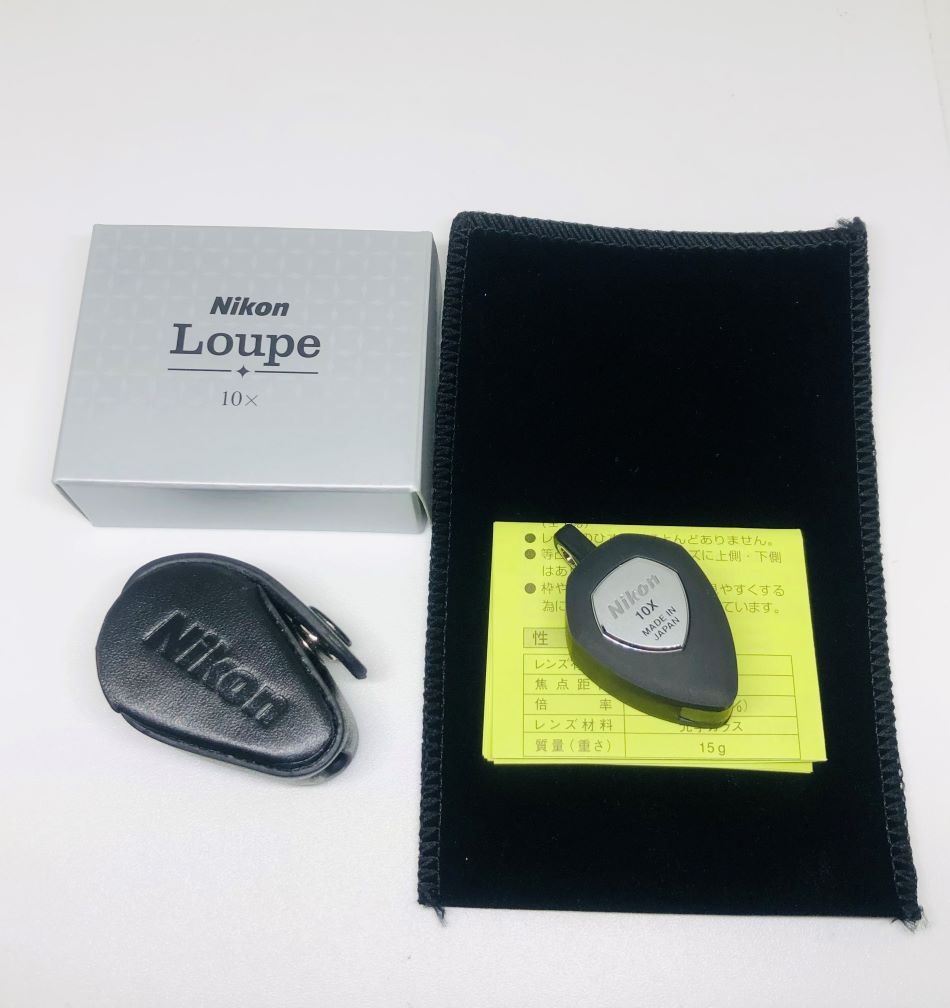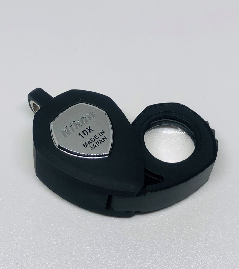 กล้องส่องพระ Nikon Loupe 10X made in Japan ของแท้100% ไม่ค่อยได้ใช้ สภาพสวยครับ ใช้ดีครับรุ่นนี้ ส่องสบายตา อุปกรณ์ครบ พร้อมกล่องตามภาพ ราคาวัดใจครับ
