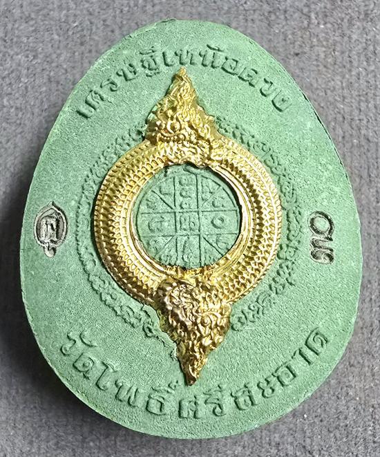 เนื้อเขียวว่าน เมตตาบารมี โรยผงงาช้าง หลังติดบ่างนาคบาศเนื้อทองทิพย์ เรืองแสง
