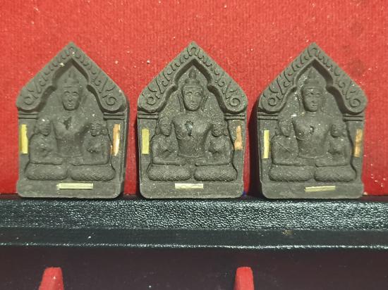 แบ่งปันพระขุนแผน รุ่น โชคลาภมหาเศรษฐี หลวงปู่หงษ์ พรหมปัญโญ วัด้เพชรบุรี จ.สุรินทร์ ปี 2546 ฝังผงตะไบมวลสาร ฝังตะกรุด 3k ด้านหลังฝังพลอยเสก ชุด 3 องค์ ประกันแท้
