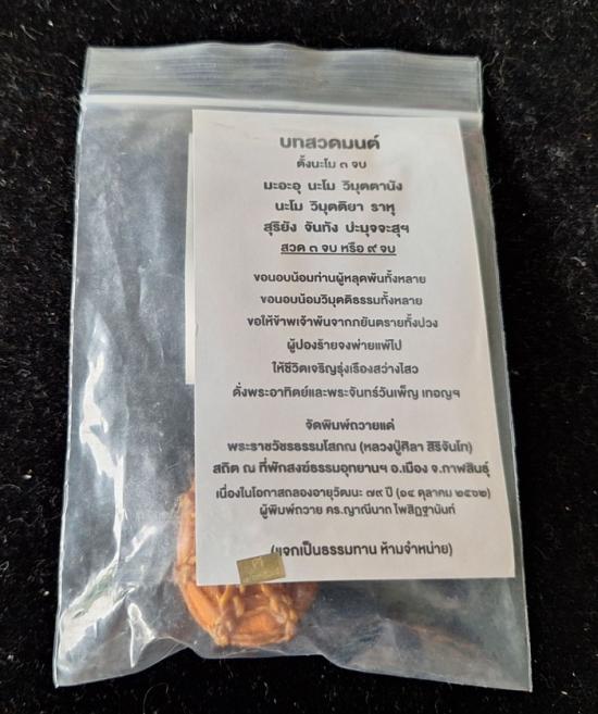 เบี้ยแก้ หุ้มจีวร ถักเชือก หลวงปู่ศิลา วัดโพธิ์ศรีสะอาด มีแผ่นเลขกำกับ ฝังตะกรุดทองเหลือง พร้อมใบคาถา ปี2567 |