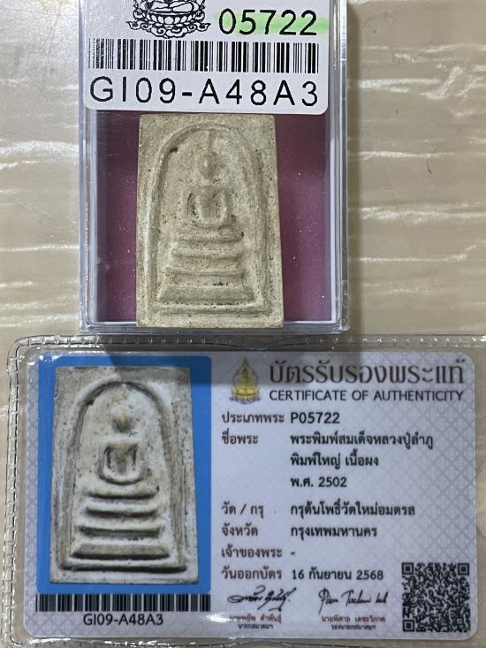 (เคาะแดง3500) +บัตรสมาคม สมเด็จพิมพ์ใหญ่ หลวงปู่ลำภู ลงกรุต้นโพธิ์