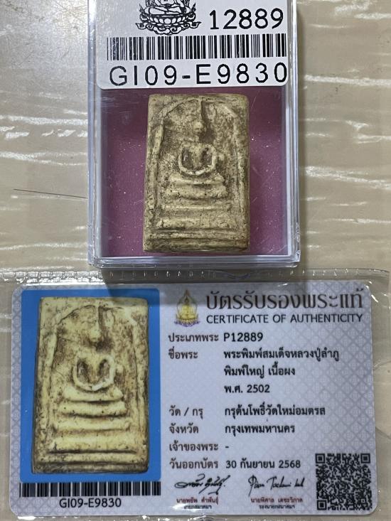 (เคาะแดง4900) +บัตรสมาคม สมเด็จพิมพ์ใหญ่ หลวงปู่ลำภู ลงกรุต้นโพธิ์