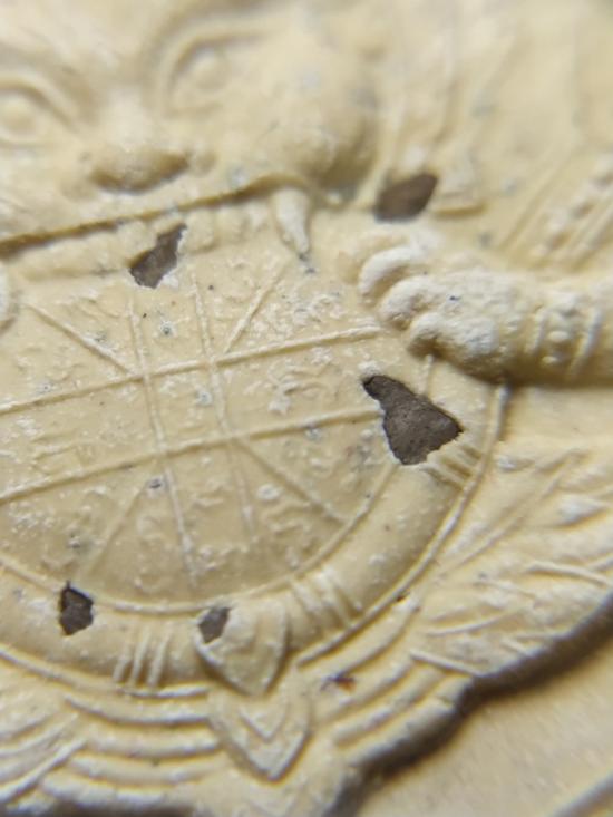 ด้านข้างมีปั้มตรายางหมึกแดง เป็นอักษรขอม"พะ"