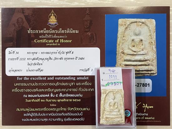 สร้างปี 2484 คราบกรุเดิมๆ สภาพสวย สมบูรณ์ ไม่หักไม่ซ่อม รับประกันพระแท้ ดูง่าย ใบประกาศรางวัลที่1 งานสมาคม