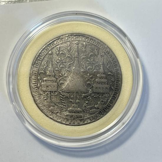 เหรียญเงิน 1 บาท ร.4 มงกุฎ - ช้าง พร้อมตลับอย่างดี