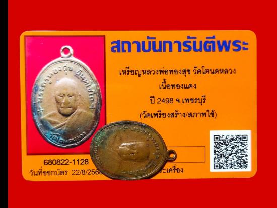 ...เหรียญหลวงพ่อทองสุข วัดโตนดหลวง เนื้อทองแดง ปี2498 จ.เพชรบุรี (วัดเพรียงสร้างสภาพใช้)พร้อมบัตร