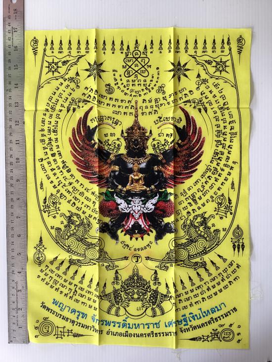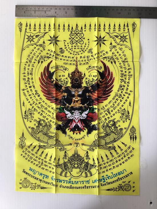 ผ้ายันต์ พญาครุฑ รุ่น เศรษฐีเงินไหลมา วัดพระศรีมหาธาตุวรมหาวิหาร จ.นครศรีธรรมราช สีเหลือง ขนาด A3 ขนาด 11.5 นิ้ว x 16.5 นิ้ว |