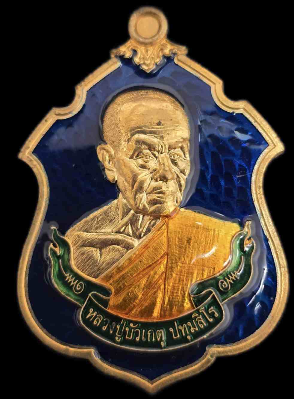 เหรียญอาร์ม รุ่นแรก หลวงปู่บัวเกตุ เนื้อสัตตลงยาน้ำเงิน เลข 1400 พร้อมกล่องเดิมๆ |